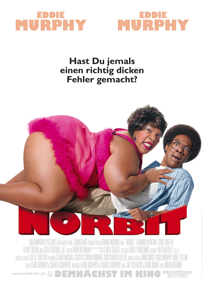 | Ich weiss nicht, was alle sooo schlimm finden. Zugegeben, er gehört sicher zu den schlechteren Filmen von Eddie Murphy, aber er ist immer noch viel mehr sehenswerter, als Scary Movie 4 oder die Liga der aussergewöhnlichen Gentlemen. Denn diese sind meine 2 Hassfilme. Wie gesagt: Muss man nicht gesehen haben, aber wer es lustig findet einmal sein Gehirn abzuschalten und sich zu amüsieren, der wird an Norbit sicher noch seinen Spass haben. |